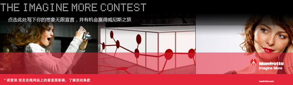 曼富图是全球领先的为摄影、录像及生活娱乐提供专业设计,制造和销售的领导者。1972年Lino Manfrotto在拥有丰富经验及熟悉该领域的基础上,正式成立公司。公司的使命始终以支持并简化记者、摄影师和制片人的工作为目标。Imagine More项目是为更好的激发摄影师热情和对业余爱好者的支持起到了推波助澜的积极作用从而更好的完成这个历史使命。