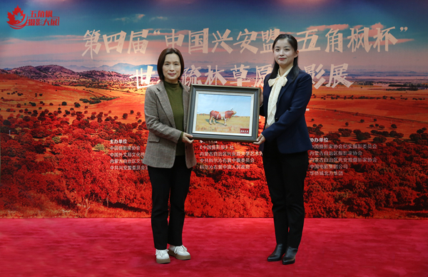 启动仪式上,陈雪娇代表科右中旗向中国摄协捐赠非物质文化遗产皮雕皮艺幅作品《抬头见喜》。该作品生动展示了科右中旗的自然之美、产业之美和文化之美,体现了科右中旗在脱贫攻坚过程深入贯彻落实中宣部为科右中旗谋划的“吃生态饭、做牛文章、念文旅经”发展思路。