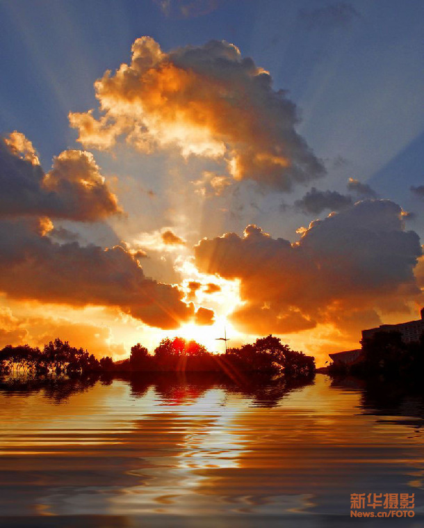 【特殊效果】日落的时候光圈的运用是十分值得注意的。用小光圈进行拍摄,能使太阳呈现星星状光芒的效果,光圈越小,这种效果就越明显。