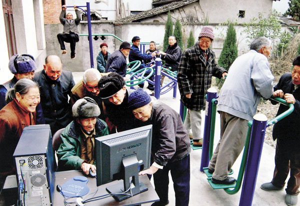 敬老院里文体热 梁惠芳/摄(浙江省遂昌县北界镇农村养老院的老人们生活丰富多彩,健身上网两不误。)
