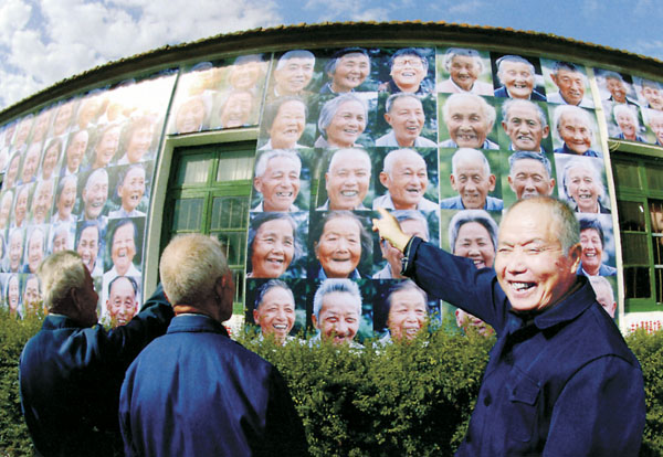 那个就是我 顾梅森/摄(浙江省嘉善县杨庙镇翁村为七十岁以上的老人制作了一面“笑脸墙”。)