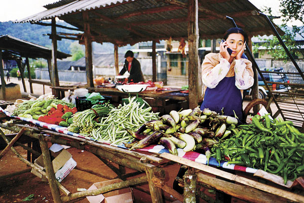 信息时代 李明富/摄(云南省景洪市大勐龙镇勐宋村,手机已成了人们交流的重要工具。)