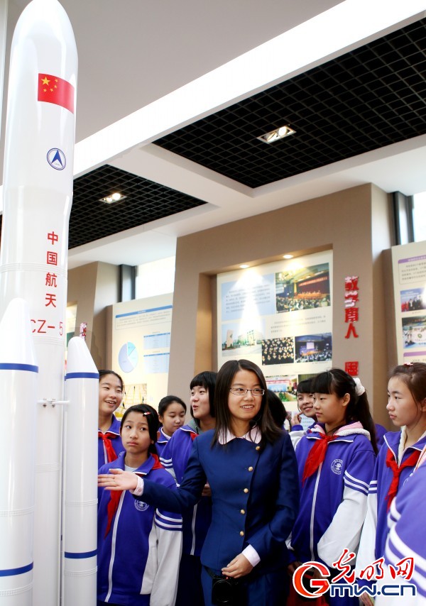11月28日,北京理工大学与北京交通大学附中开展了"弘扬延安精神 分享北理美德--让青春放光彩" 主题教育活动,北京理工大学杨宾副校长介绍说:高等教育是优秀文化传承的重要载体和思想文化创新的重要源泉;校园文化"是一种核心价值观的传承",她蕴含着一所学校的育人的特色。北京理工大学作为中国共产党1940年在延安创办的第一所理工科大学,有着优良的革命传统和内涵丰富的延安精神,延安精神 薪火相传,体现在一代又一代的北京理工大学师生身上,使北理工特色的校园文化培养出了一批批推进文化传承创新和服务经济社会发展的优秀人才。图为在校史馆安保思想疏导师为学生们讲述创办于延安的北京理工大学的发展历史。记者刘新武摄