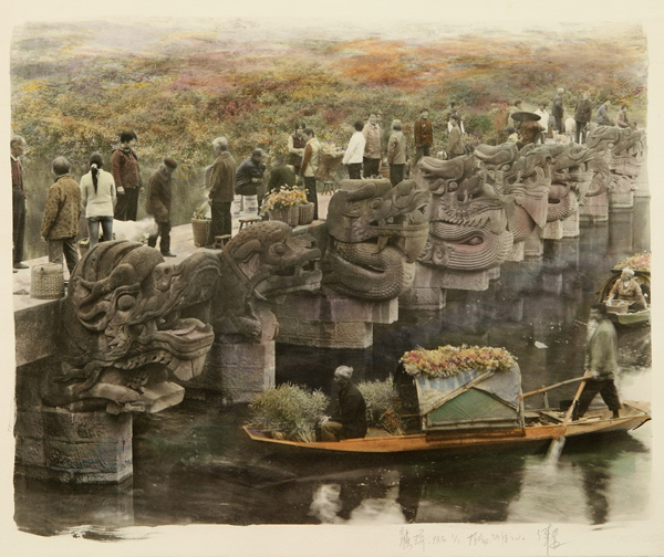 四川泸县,从宋代直到民国都有这样有雕有龙的桥,现存170多座.龙桥是最简单平板桥,桥身却饰以精美的龙头圆雕.我选了其中的几座接在一起,人物就是生活在当地的农民,他们在桥上买卖交易的场景.这一切象似幻境一般平铺展开,似国画散点关系里,龙就有了新的生命,时间好似镜子一样的水面,人物场景里的一切都融于水里了。