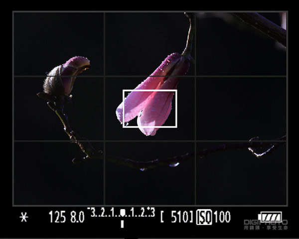 需要注意的是,在使用评价/矩阵测光时,曝光锁定的是合焦的自动对焦点的测光结果。使用中央重点平均测光、点测光和局部测光时,则锁定中央对焦点的测光结果。半按快门键针对被摄主体对焦、测光,再按下机身背面的按钮即可锁定曝光值。
