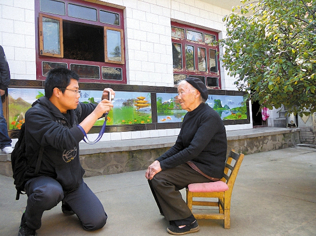袁柯在为农村老人拍照