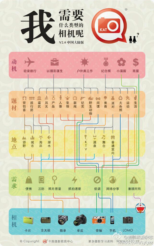 相机的种类千奇百怪,很多摄影初学者都不知道自己到底需要哪种类型的相机,不知道哪种相机是最适合自己的需求的,更不知道该如何选购了。现在,我们特意制作了2.0版的相机选购路线图《我需要什么类型的相机呢?》,您只需要根据自己的情况,往下走下去,就会找到答案啦!