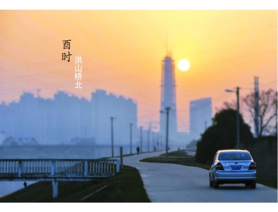 酉时 洪山桥北。浏阳河边的弯曲小路,一辆车,一排楼房,一轮夕阳是这个时刻的主题,当然,还有那份行驶在路上的归家之心。