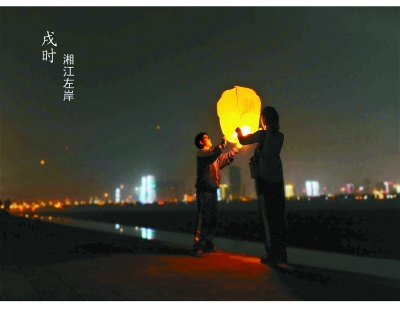 戌时 湘江左岸。放飞孔明灯,放飞理想和希望。