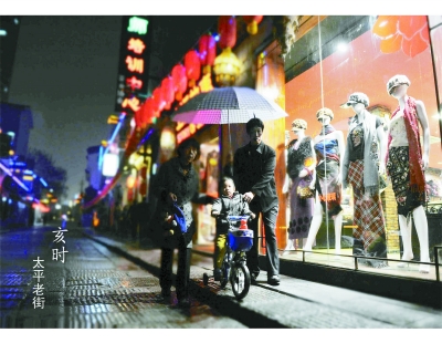 亥时 太平老街。橱窗里的时装,雨后的古老石板路,伴着祖孙三人走过。