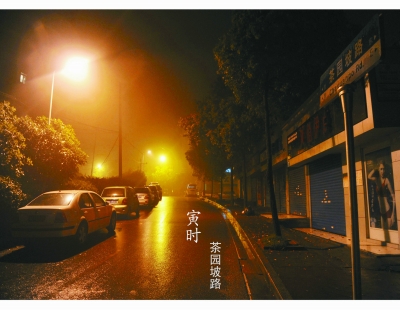 寅时 茶园坡路。一场大雨过后,夜静谧美好,雾气笼罩着灯光,几小时守候的艰辛已然忘却,我和这里的一切一起等待日出。