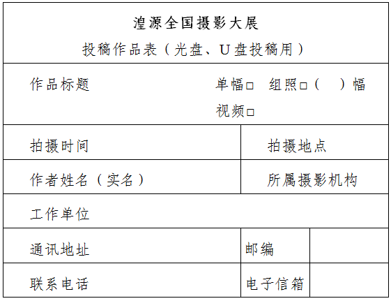 投稿作品以光盘(CD-R或DVD-R)、U盘存储形式邮寄至:北京市东城区东四十二条48号 中国摄影报社活动项目部“湟源全国摄影大展”办公室收(100007)