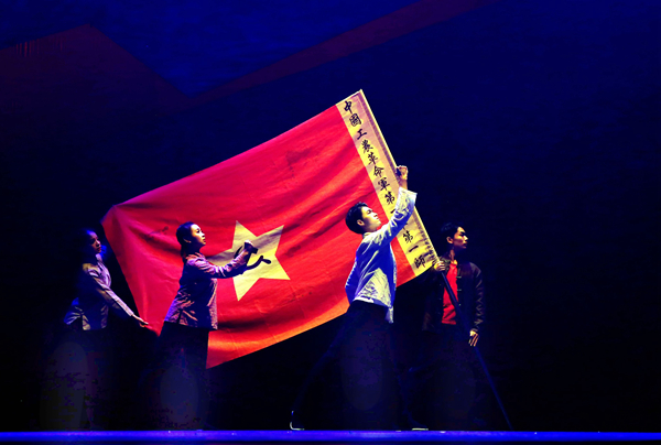 6月23日,原创舞蹈诗剧《峥嵘岁月》在南京市文化馆大剧场上演。图为演出现场。
