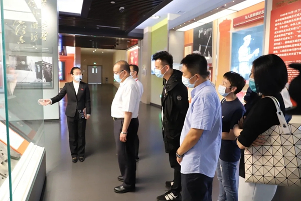香山革命纪念馆庄重大气,馆内主题展览《为新中国奠基——中共中央在香山》由“进京‘赶考’”、“进驻香山”、“继续指挥解放全中国”、“新中国筹建”和“不忘初心牢记使命永远奋斗”五个部分构成,以珍贵详实的历史照片、历史文物、档案及视频按照历史的脉络生动详实地为人们全景式呈现了以毛泽东同志为核心的党中央在香山停驻期间为新中国诞生奋斗的光辉历史。参观的过程中,董耀鹏同志和协会党员干部边浏览边交流,深入了解舞协党史学习教育和党建工作开展情况,并多次补充讲解我党历史的高光时刻。广大党员干部也认真地听取每一部分讲解,时不时地进行探讨,驻足观看场馆内播放的纪录片,尤其是观看《开国大典》珍稀影像时,大家仿佛坐上了时光机,回到了那个激动人心的辉煌时刻。