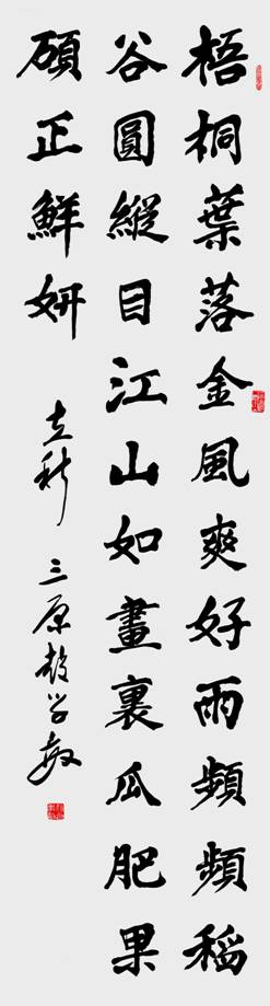 著名书法评论家胡湛评价:赵学敏先生注重生活和诗书结合起来,在生活当中把这种感情及时的写成诗,写成作品。这幅《立秋》作品就是代表,而且笔法精道,具有自己的风格。