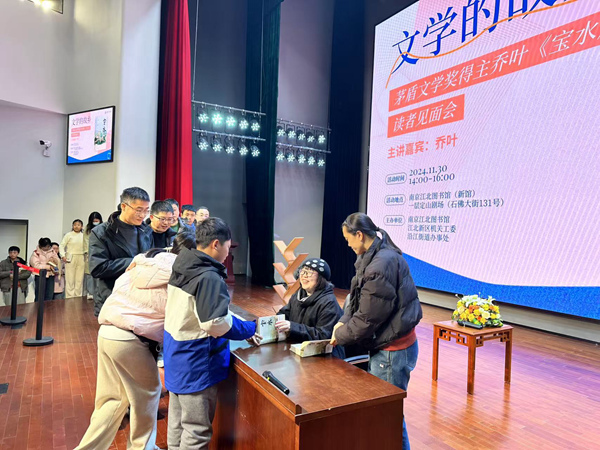 11月30日,由南京江北图书馆、南京江北新区机关工委与沿江街道办事处联合主办的定山讲坛第十五期“文学里的故乡——茅盾文学奖得主乔叶《宝水》读者见面会”在南京江北图书馆一楼定山剧院举办。活动邀请第十一届茅盾文学奖得主乔叶与主持人周学展开对谈,分享故乡赋予我们的力量,活动吸引了读者的踊跃参与。