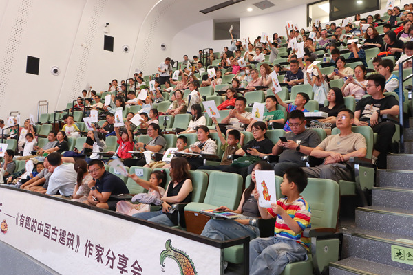 “屋顶的大龙头是什么?”“斗拱是什么?”“古建筑屋顶为什么是曲线的?”互动环节,小读者们踊跃举手,天马行空的问答碰撞出思维的火花,杨大炜与大家面对面交流,解锁古建筑的“十万个为什么”。