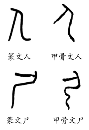 尸字决非死尸。死尸繁体作屍,为晚造字。甲骨文尸象人蹲踞之形。商代卜辞常见“尸方”,乃指山东半岛,因为彼邦之人习惯蹲踞,不像中原的文明人席地而坐。尸夷二字古音相同,所以“尸方”之人后来又称东夷。