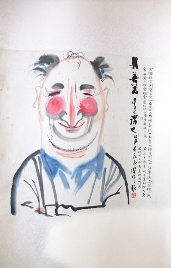 在聊天的过程中,我的视线转到了墙上的一幅漫画。漫画抓住了陈强的特点,极富喜感,是一个喜剧陈强,用惟妙惟肖来形容绝不过分,足见作者功夫之深。一问果然出自黄永玉大家之手。李玉洁说,好像是1967年,陈强和赵丹、黄永玉、郭维等在朋友傅克家做客,黄永玉即兴创作的。我饶有兴趣的边欣赏边看画中题款: