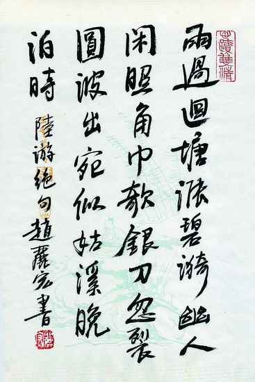 赵丽宏书陆游《池上见鱼跃有怀姑熟旧游》