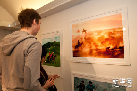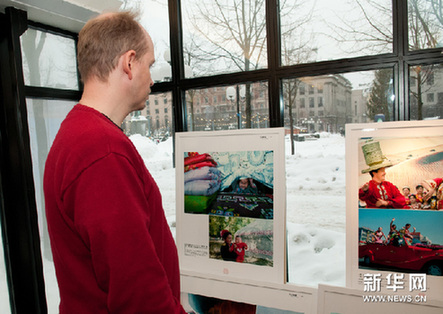 12月22日,参观者在斯德哥尔摩国王花园影廊欣赏“大美新疆”摄影展图片。新华网图片 刘一楠 摄