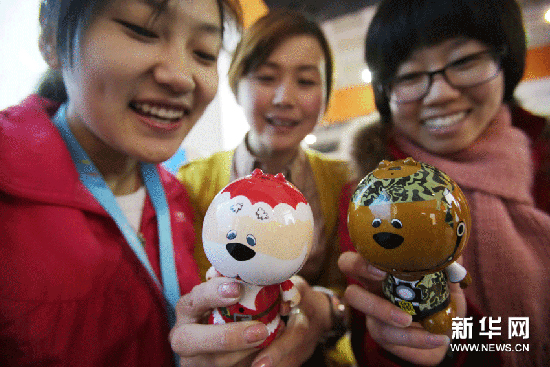 12月20日,在第七届中国北京国际文化创意产业博览会上,工作人员在演示具有与人对话、跳舞等功能的智能桌面互动玩偶机器人。