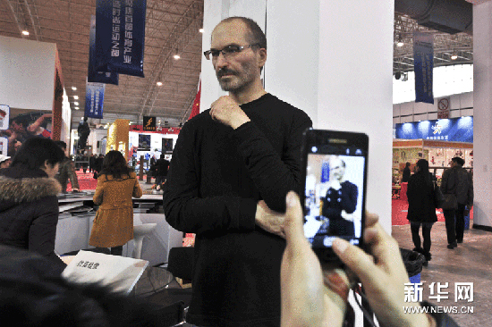 12月20日,一名参观者在第七届中国北京国际创意产业博览会上拍摄高仿硅像《乔布斯》。