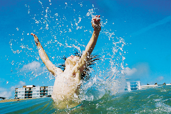 在英国布莱顿海边,这一刻,我的儿子正快乐地拥抱着令人颤栗和充满能量的海浪。该照片使用柯达Portra 400VC专业彩色胶卷拍摄。