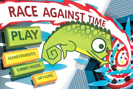 《争分夺秒》将手机娱乐与艺术史融合在一起。用户扮演一只英雄变色龙,它以现代艺术史为时间轴完成一次拯救世界的艺术之旅,粉碎邪恶的灰度博士想把整个世界的颜色抹去的阴谋。游戏背景、音乐和敌人都在不断改变,角色设计和缤纷的背景正是该游戏的魅力所在。