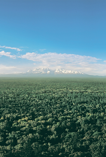 在这里有一种松树,红红的树干,酷似女人的肌肤,它长得又高又直,没有任何枝杈,它从根部直直伸向蓝天,只在树梢上长出一片如伞盖似的顶冠,酷似美女散开的飘逸的秀发,当地人称此树为“美人松”。