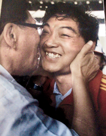 1984年,在许海峰获得中国首枚奥运金牌后,中国代表团团长黄中激动地亲吻许海峰,喜极而泣。