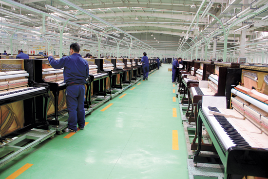北京星海钢琴集团有限公司总装厂流水线 本报记者 乔燕冰 摄