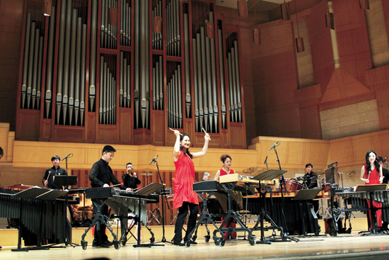 打击乐演奏家张景丽3月23日携箭丽打击乐团在中山音乐堂为首都观众送上了一台精彩纷呈的快乐盛宴。演出现场,乐团同时运用了钢片琴、木琴、定音鼓等上百种打击乐器,音效十分震撼。不管是古典乐曲还是流行歌曲,各种题材的音乐,箭丽打击乐团都“信手拈来”,在艺术家们的创意编排下,几乎每个作品都“打动”了观众的心。其中,在施特劳斯的圆舞曲中,乐团用鼓声模拟敲出开启香槟的声音,惟妙惟肖的声音直接传递出曲目波尔卡庆祝快乐和胜利的快乐情绪,成为音乐会的一大亮点。 阿伟 摄