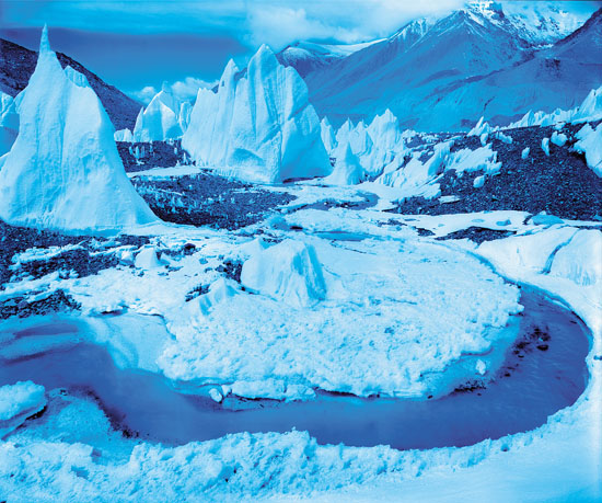冰川(玻璃蓝晒接触印相,底片采用20×24in黑白负片 2011年5月 西藏绒布冰川) 金平 摄