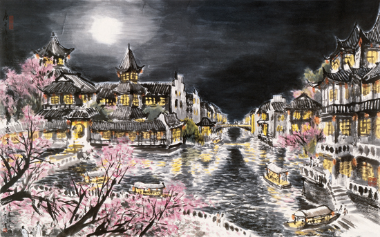 春江花月夜(水墨水彩生宣纸)1990年 刘墉