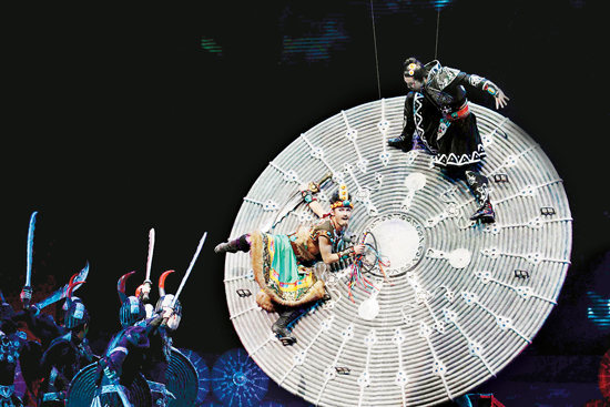 成都军区战旗文工团演出的《英雄格萨尔》,这面巨大的银色盾牌上浓缩了“霍岭大战”的壮阔与激烈。