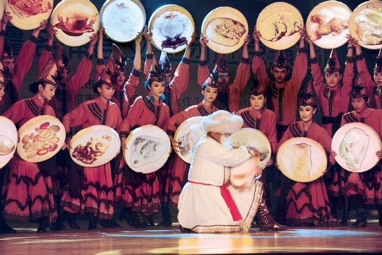 演出当晚,家乡的“塔什古丽的传说”成为导演古丽娜·塔衣尔创作灵感的重要来源,一场集体舞《塔什古丽的传说》拉开了序幕,动听的乐曲、优美的舞蹈,仿佛将人们带到了美丽的新疆。维吾尔族姑娘小伙擅长载歌载舞自不必说,而突出民族性、古典美及原生态则是本台晚会最大的特色,演出中,类似二人转这种即兴自编自唱的双人歌舞来帕尔是和田民间艺术中的珍品,和田地区流传下来的唯一具有代表性的古代乐器巴拉曼合奏已很少有人能够表演,以1984年在洛浦县赛依瓦克村1号汉墓出土的一块叶纹栽绒毯为蓝本的女子集体舞成为丝绸之路的繁盛再现……所有这些,都令观众在大开眼界、大饱眼福之余,对于新疆民族文化有了更深的了解,而这也是此次创作的初衷。古丽娜·塔衣尔认为,最值得推介的节目当属集体舞《洛浦麦西来甫》和《长寿乡的烤包子》——麦西来甫是舞蹈、各种民间娱乐和风俗相结合的一种歌舞形式,包括乐曲舞蹈和娱乐游戏,“这种男女弹唱歌吟的活动在新疆库车、吐鲁番的千佛洞壁画中均有反映”;“洛浦的烤包子很有名的!”乐曲取自洛浦乡村,旋律优美、节奏欢快,舞蹈热情奔放,表现了洛浦人民生活在和谐、稳定、幸福家园的欢乐场景。