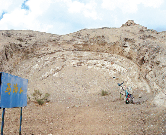 图木舒克马蹄山是一座石头山,据说,马蹄山的名称由来,是因为山丘上的两个酷似马蹄印的印记。山正面有两个很大的马蹄形凹坑,附