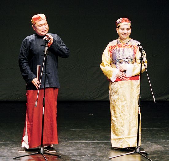 看了《老佛爷的爷》之后,北京戏剧家协会秘书长、驻会副主席杨乾武觉得虽然演员们说的是清朝的故事,但是不一定非要化装出场,“在现代剧场演员是可以跳进跳出的”。在他看来,相声剧不在于用什么样的外在形式表现,最重要的是有没有戏剧的内在因素,“台湾的相声剧有一些很成功的例子,比如赖声川的《千禧夜,我们说相声》等,是非常有情怀的大戏。当代戏剧的概念本身就是能综合很多东西的,相声剧应该具有戏剧的思想内容和内在结构。”