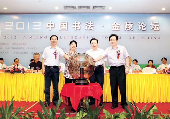 由中国文联、江苏省人民政府主办,中国书法家协会、江苏省委宣传部、省文化厅、省文联、南京市委宣传部执行主办,南京市浦口区人民政府、江苏省书法家协会、江苏省文化发展基金会承办的2012中国书法·金陵论坛,7月15日至16日在南京浦口珍珠泉风景区举行。全国政协副主席、中国文联主席孙家正,江苏省政协主席张连珍,江苏省人大常委会副主任李全林,江苏省副省长曹卫星出席开幕式并启动论坛开幕。