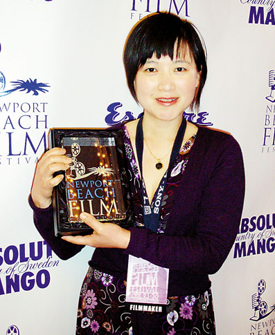 顾筠手捧纽坡特国际电影节纪录片杰出成就奖奖杯