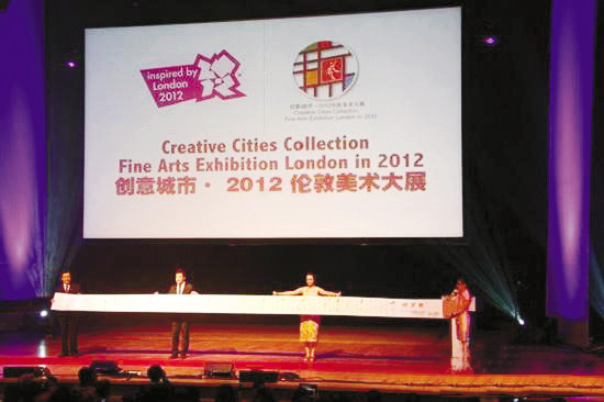 在“创意城市2012伦敦美术大展”开幕式上展示《体育颂》长卷图册