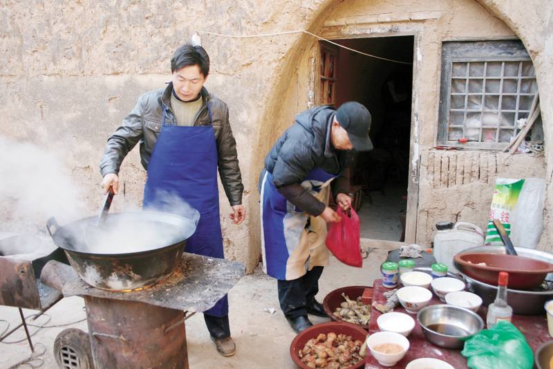 做饭的师傅是顾来的,两个人一天做两顿饭,早饭和午席,外带十套就餐用的桌椅板凳及供百人用的杯盘碗筷,主家一天要出160元。细细算起来,虽然不算贵,但是对这穷山洼子来说,也是一笔不小的支出。