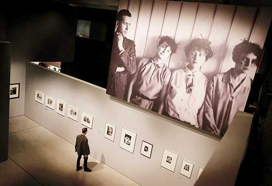 展厅内的巨幅摄影作品:设计了第一把钢管椅的马歇布劳耶与学生们的合影