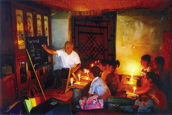 这位老教师已经退休,为了留守孩子不荒废学业,他发挥余热,在自家炕头建了“教室”,为留守学生义务上课。 佟飞 摄