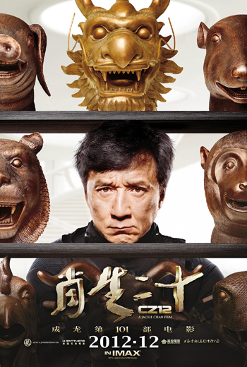 由成龙影业、华谊兄弟、英皇电影共同出品,将于今年12月贺岁上映的《十二生肖》于当地时间9月9日在加拿大多伦多召开发布会。出品方特别于近日发布《十二生肖》首款海报。作为第一款正式对外曝光的海报,以兽首为主题元素,每个铜首皆面露微笑,而主演成龙则身藏兽首之中,谐趣又颇有神秘意味,令人揣摩不透侠盗危机四伏的夺宝之旅。此款海报的设计还邀得全美获奖最多也是世界级海报先锋设计团队亲自操刀。