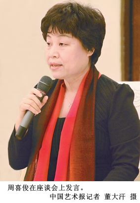 在周喜俊看来,如何为人民提供优质的精神食粮,是文艺工作者肩负的神圣职责。2004年8月,周喜俊走上石家庄市文联主席岗位后,首先想到的是只有带出一支优秀的文艺队伍,才能创作出无愧于时代、无愧于人民的精品佳作。文艺为什么人的问题,是能否体现文艺界核心价值观的根本问题。为解决好这个问题,在周喜俊带领下,石家庄市文联从2005年开始,以纪念毛泽东同志《在延安文艺座谈会上的讲话》为契机,连续多年开展大型主题活动;围绕“打造精品力作,建设文化强市”主题召开十大协会主席座谈会,唱响文艺精品提升文化软实力的主调;召开全市文艺创作大会,举行百名文艺家“新农村建设采风团”出征仪式,把深入生活作为创作精品的基础工程;举办文艺发展论坛暨成果展,用图文并茂的展板形式,对石家庄市近10年的获奖作品进行盘点和回顾……这一切都是要让大家明白,只有深受人民大众喜爱的作品才是真正的艺术精品。今年,石家庄市文联又组织了石家庄文艺界走基层革命老区平山行大型采风活动。周喜俊说,就是想通过这些活动,有组织地把文艺队伍带到社会实践的第一线。明确的发展方向,使石家庄市文艺队伍呈现出昂扬向上、朝气蓬勃的态势,文艺事业走上了良性循环、健康发展的轨道,既很好地践行了文艺工作者职业道德公约,更为石家庄文艺精品创作打下了坚实的基础。