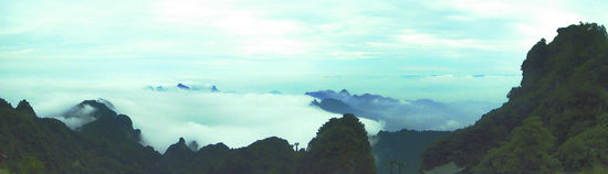今年9月6日,我有幸来到武当山这座中国道教名山。更有幸的是,当我与众多民歌音乐人一起登上武当最高峰海拔1600多米的天柱峰时,天现瑞相,一时神云蒸腾,仙雾缭绕,柔美百态。那云雾,仿佛是神仙呼吸的洁白气息,让方圆八百里的武当山忽隐忽出,似绿似白,犹如半遮半掩、似有若无的蓬莱仙境。