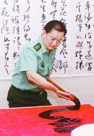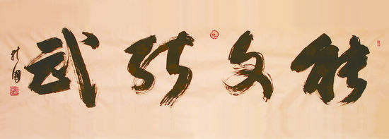 今天不同于古代,但作为一个有追求有修养的从政者,一样可以运用书法张扬自己为官从政的个性品格,一样可以在笔墨之间传导自己所信奉的理想情怀和人文精神。然而,笔墨难写是精神,苦练一笔好书法,对一个人来说只要下足够多的功夫是可能实现的,而要在笔墨间张扬道德理想,实现书品与人品的完整统一,并非每个人都能做得很好。其实写好字与做好人是统一的。在这个问题上,徐新国作为一名军队机关干部,他在人品和书品上是统一的,他为人忠厚,宽人责己,善交知心朋友,讲究道德操守,他虽然承担着异常繁重的工作任务,但他闹中取静,忙中偷闲,追求的是一种高雅健康的文化修养。徐新国不仅以书法为人们做了一个可供学习的样板,也在生活追求上提供了一个可供人们效法的楷模。他的书法,率真而不离法度且有气韵。无法度不足观,死守法度也同样不足观。徐新国的书法正是在这两者之间寻找结合点,这就是他善于把握书法的度。我们有理由为他的书法创作成就表示由衷的祝贺,也期待他在书法艺术这条路上走出更加光辉的前景。