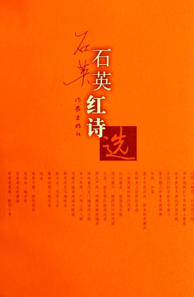 一本透着温暖色彩、橘红似血的封面设计的诗集捧在手上,如手捧一块被烈士鲜血染红的圣石,庄严、热烈,令我肃然起敬。在当前诗坛的语境下,单就这本《石英红诗选》的名称,就给我一种披荆斩棘、赴汤蹈火,在所不辞的壮士的感觉。